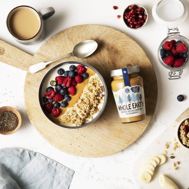 Mettez le yaourt à la grecque dans un bol et étalez votre beurre de cacahuètes sur le dessus du yaourt selon la forme de votre choix. Nous recommandons une belle ligne au centre.